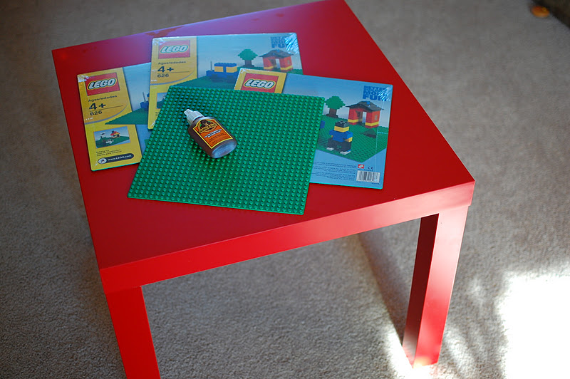 Do you have a little builder at your house?Β You can turn any small table into the perfect spot for Lego play.Β Simply choose a table, paint it a fun color (optional!), and glue Lego Baseplates to the top.